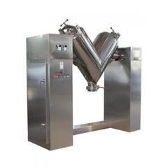 V 型混合机系列产品为V型高效不对称混合机,它适用于化工、食品、医药、饲料、陶瓷、冶金等行业的粉料或颗料状物料的混和。该机结构合理、简单、操作密闭,进出料方便,(人工或真空加料)混料筒结构独特,混合均匀,效率高,不积料。整机结构简单,操作容易。外表面和物料接触部分均采用优质不锈钢制造,造型美观,维护、清洗方便。筒体采用不锈钢材料制作,便于清洗,是企业的基础设备之一。      本机一端装有电机与减速机,电机功率通过皮带传给减速机,减速机再通过链轮传给V型桶。使V型桶连续运转,带动桶内物料在桶内上、下、分、合进行混合。      适用于物料流动性良好、物性差异小的粉粒体的混合,以及混合度要求不高而又要求混合时间短的物料混合,由于V型混合容器内的物料流动平稳,不会破坏物料原形,因此V型混合机也适用于易破碎、易磨损的粒状物料的混合,或较细的粉粒、块状、含有一定水份的物料混合之用,广泛应用于制药、化工、食品等行业。