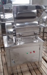 本机为卧式粉碎结构,物料由料斗进入粉碎室,利用旋转刀与固定刀冲击、剪切而获得粉碎,经旋转离心力的作用,物料自动流向出口处。该机按“GMP标准设计”,整机全部采用不锈钢材料制造,结构简单、清洗方便、噪音低是目前粗粉碎中优良设备。